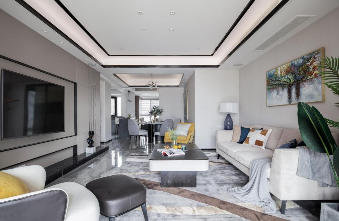在这套120平米的现代轻奢风格装修案例中,在现代优雅的空间,加入欧式的边框造型,布置华丽轻奢的细节与家具软装,让居家空间显得格外的温馨