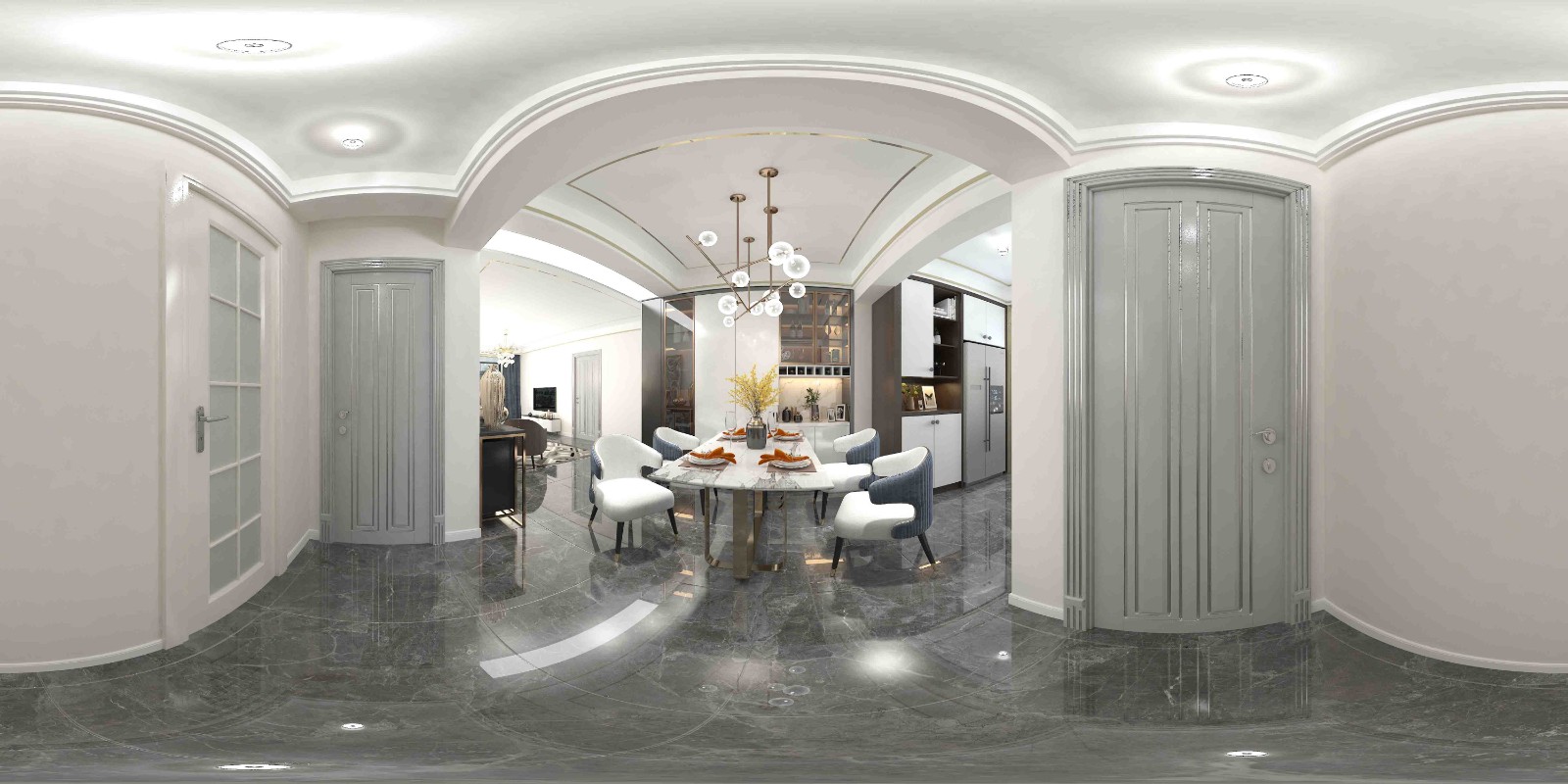 以白色为主色调运用小部分金属元素点缀使空间更奢华