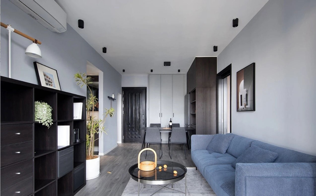 以留白手法打造开放式布局,搭配橡木地板、微水泥等自然元素,冷黑、冷灰有格调的家,将极简主义的生活美学贯彻到底!