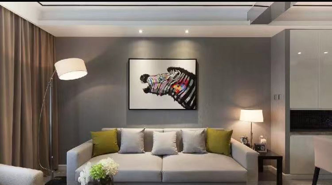沙发旁边布置一个矮柜,摆上一些装饰,让空间显得更加艺术雅致