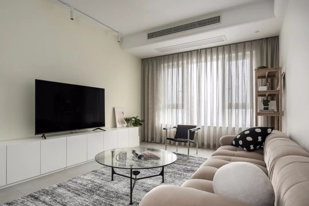 奶油色的色调,柔软的沙发,原木色的家具