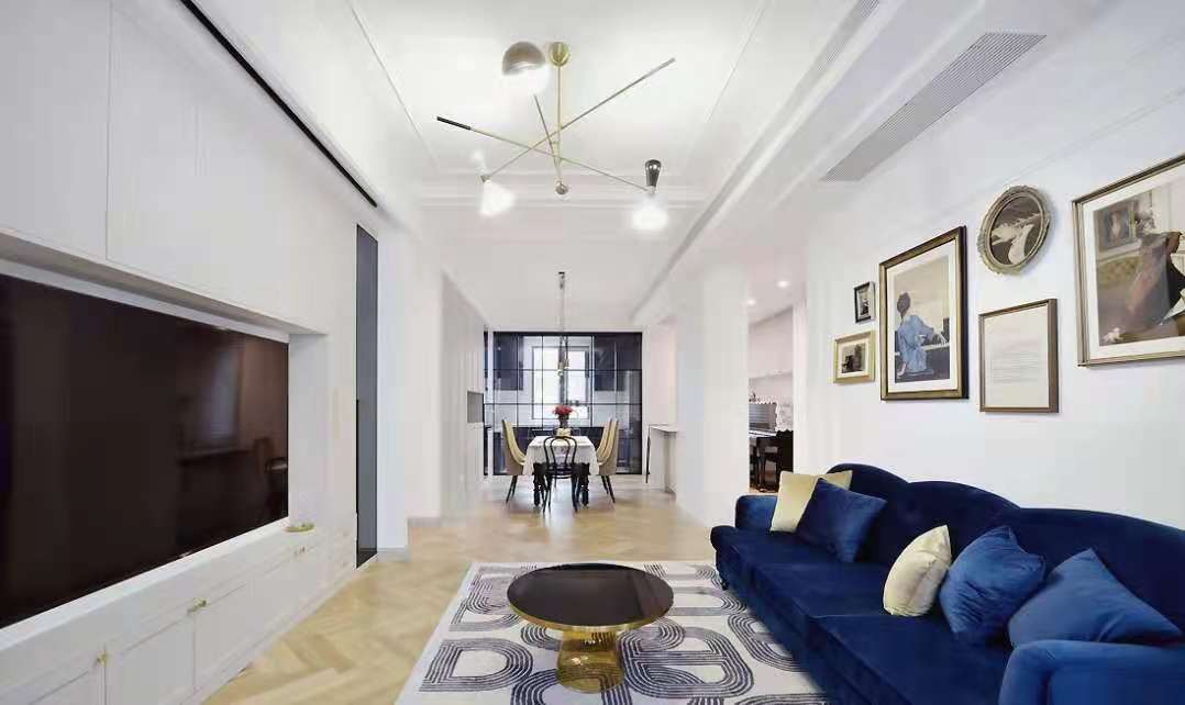 灰蓝色的稳重与静谧充盈了整个空间,十分适合双人世界的模块沙发,其较低的靠背模糊了空间界限。十分适合双人世界的模块沙发,其较低的靠背模糊了空间界限。厨房运用细框玻璃移门来增加空间延伸性,光线也不受阻碍地引入室内。