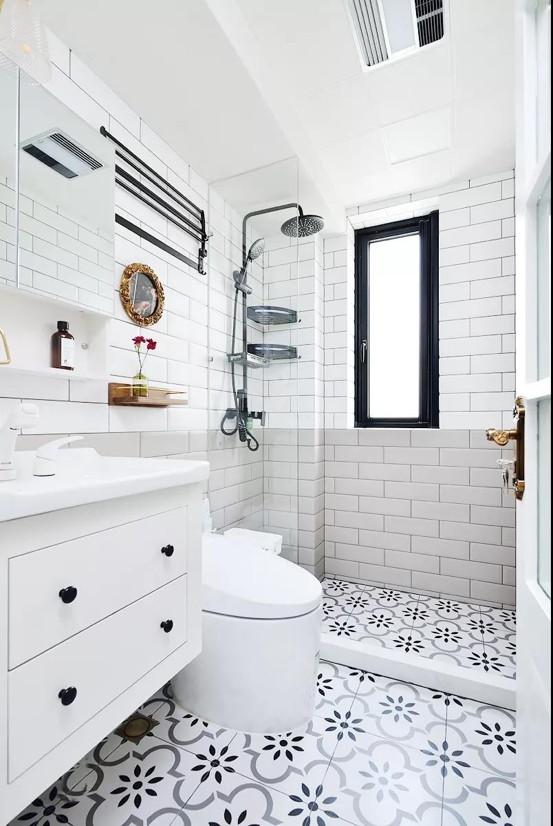 相同色系的小方砖,给墙面带来了小小的跳跃感。金色的把手和小装饰,让整个空间更加复古