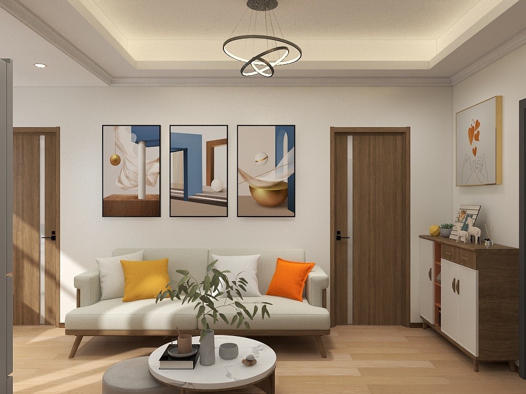 搭配一张简洁轻便的原木茶几,点缀几个亮色的抱枕