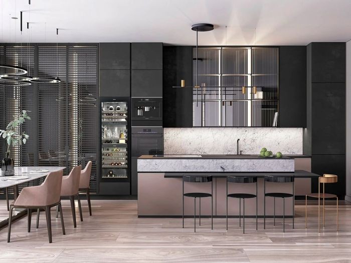 黑色厨柜器有助于压低粉状装饰