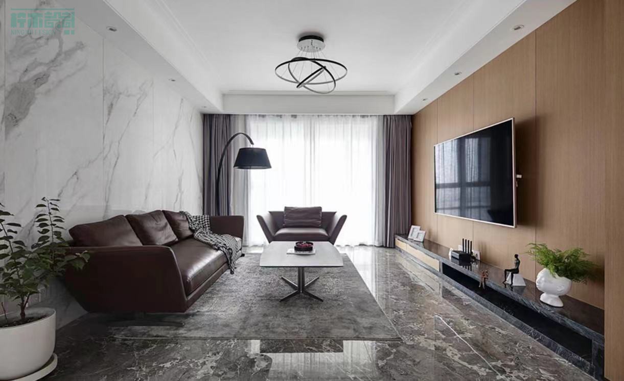 客厅理性稳重的冷色基调,全屋齐平贴脚线设计。