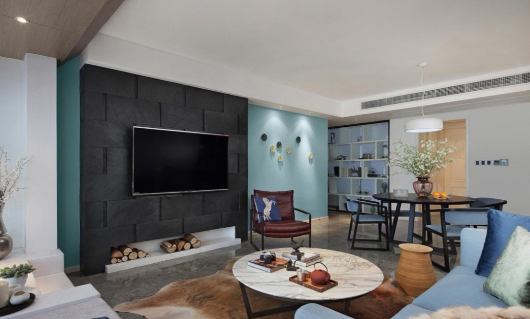 墙面的Tiffany蓝和灰色的融合,是一种色彩的延续