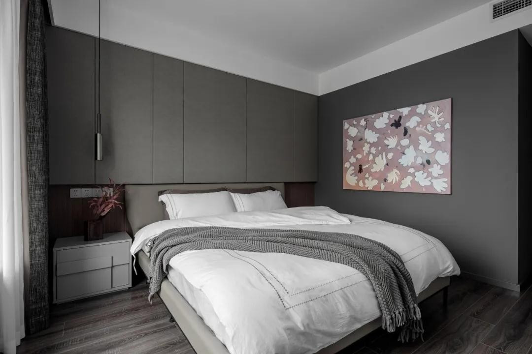 延续了公共空间的灰色调,搭配柔和的粉色,静谧又温馨。