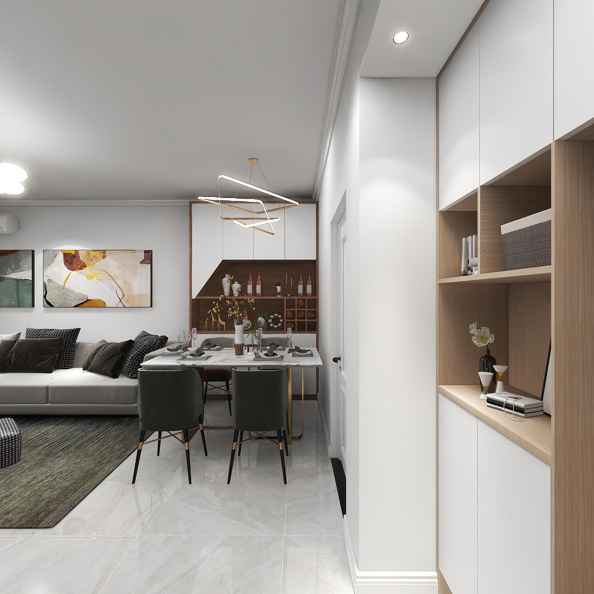 白色与浅灰色的搭配更加百搭,让整个空间视觉更加自然。