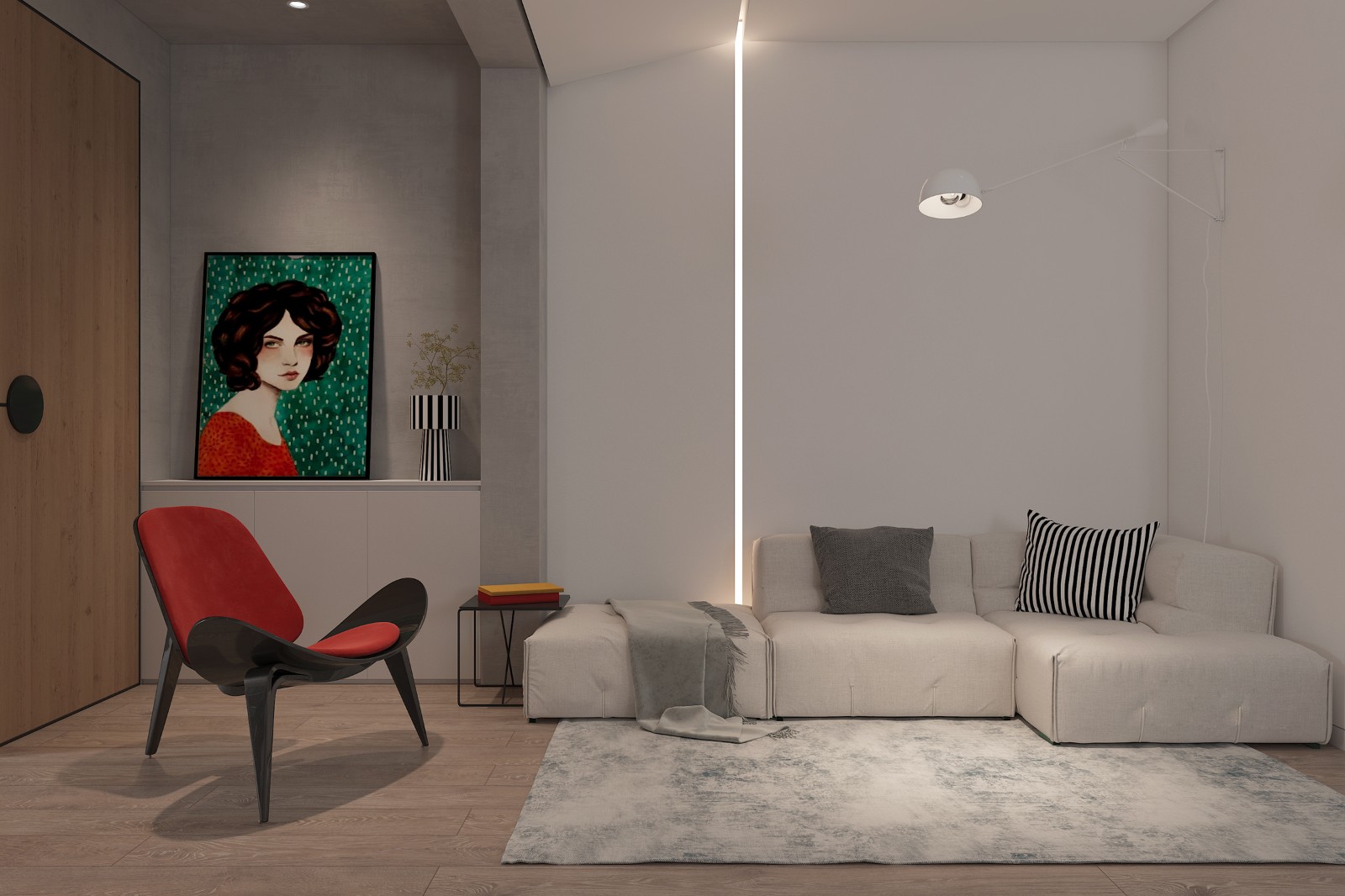 客厅采用双色拼接,嵌入线性灯,增加收纳柜,简单却不单调。