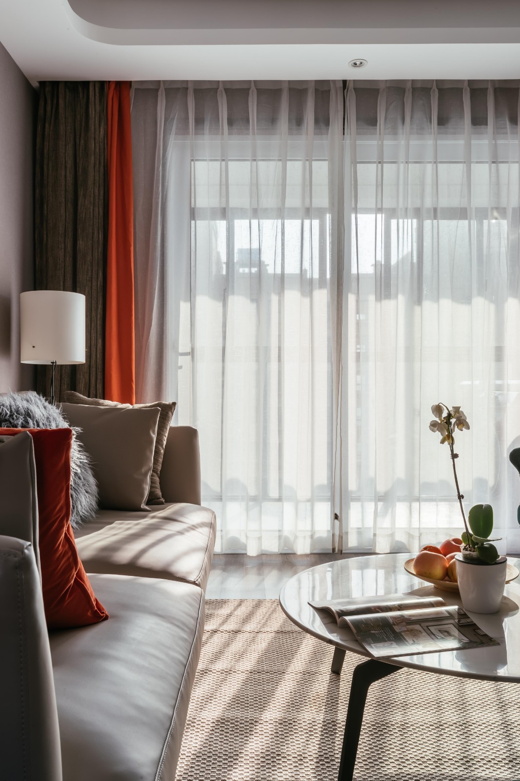 客厅和阳台之间一整个落地窗,光照很舒服,再配上窗帘,增加了一点神秘感