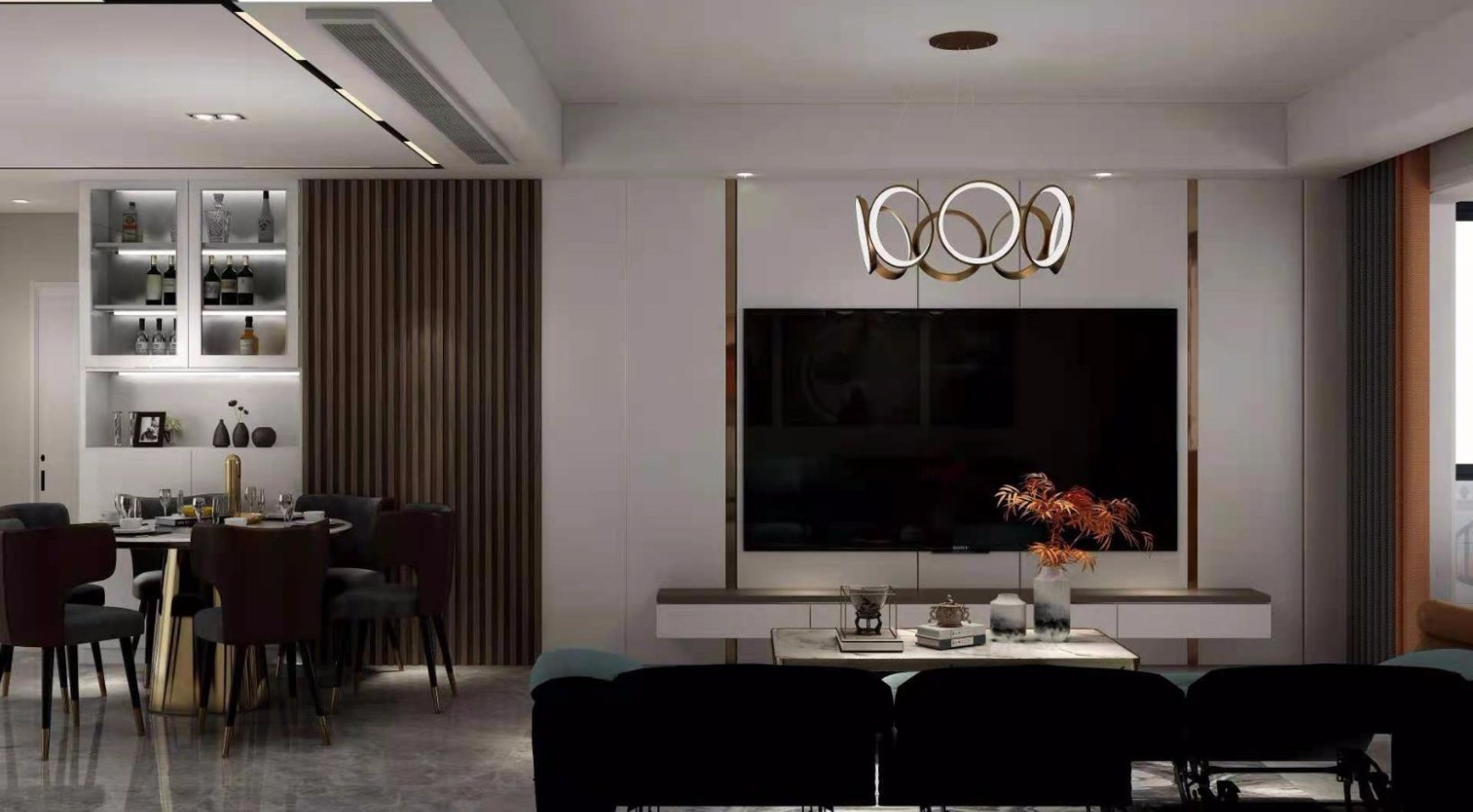 整体以简约风格为主,加入了一些金属元素,提升了整个空间的格调,虽然看似简单,但是细节的地方又有很多的装饰,让整体不单调