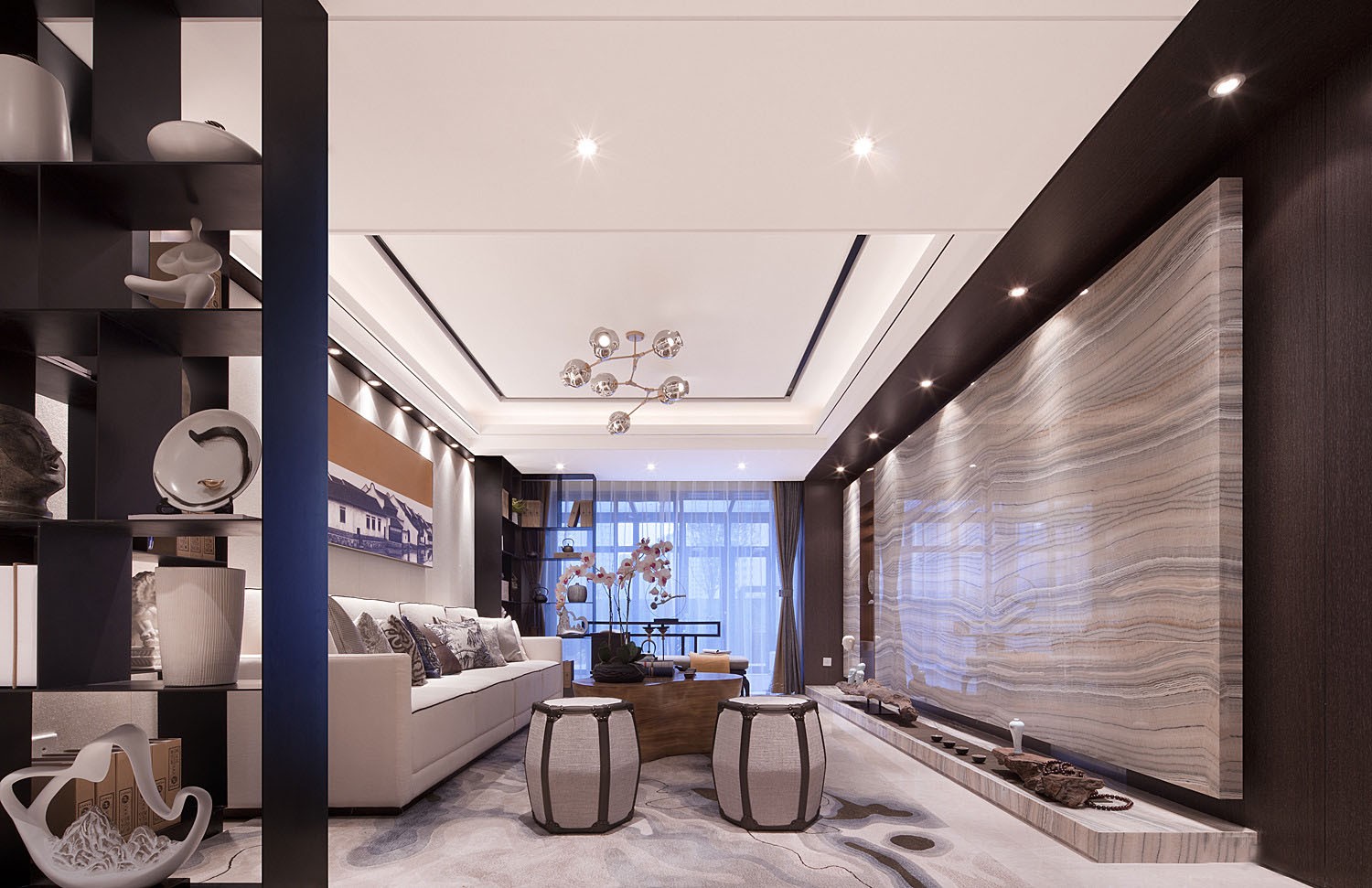 从繁华回归淡泊,从都市回归自然,从自然中寻找心中的那一方山水,“仁者乐山,智者乐水”,能寻得山水者,仁智者也。本案摒弃繁杂的装饰,以现代的形式表达中式蕴味,