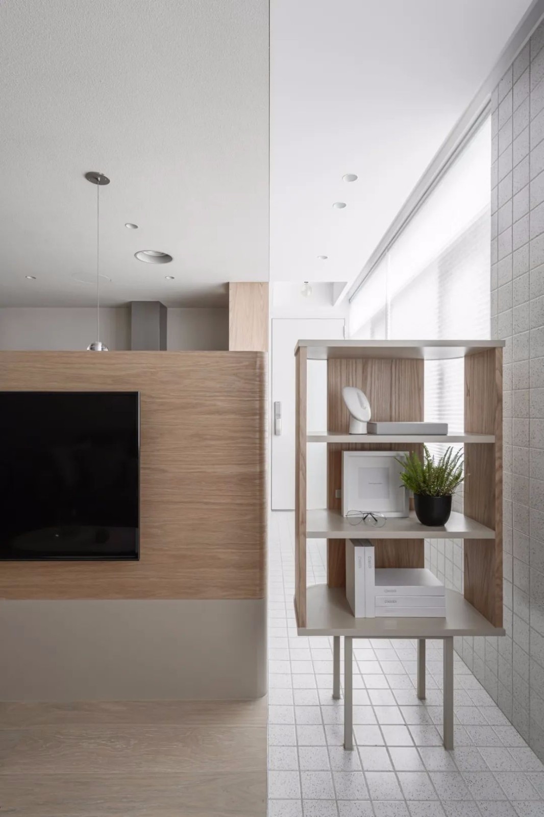 白橡木衣柜作为柔性分界 屋主夫妻俩在家开火频率不高,厨房采用开放式设计,让料理环境更明亮宽敞。