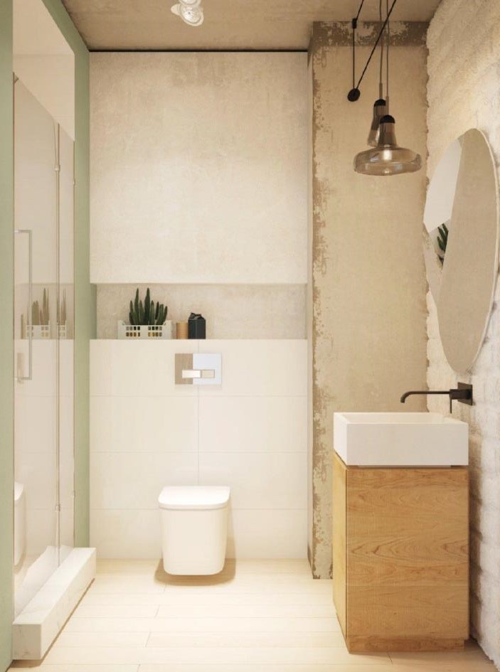 卫生间明亮清爽,墙排马桶易打理,顺势做了壁龛放置一些常用物品。