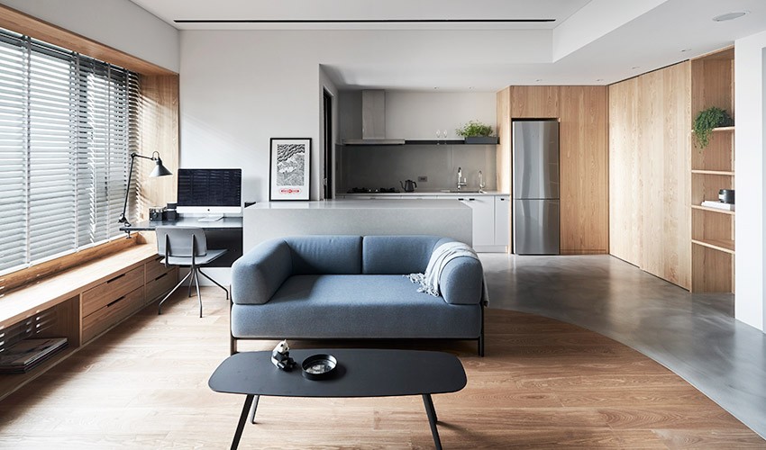 透过空间比例和材料出发,以适度的留白设计,搭配轻微的跳色,为屋主量身打造适合的居住空间。开放式设计,缓解了空间紧凑感,看似通透的格局,又有着明确的分界。