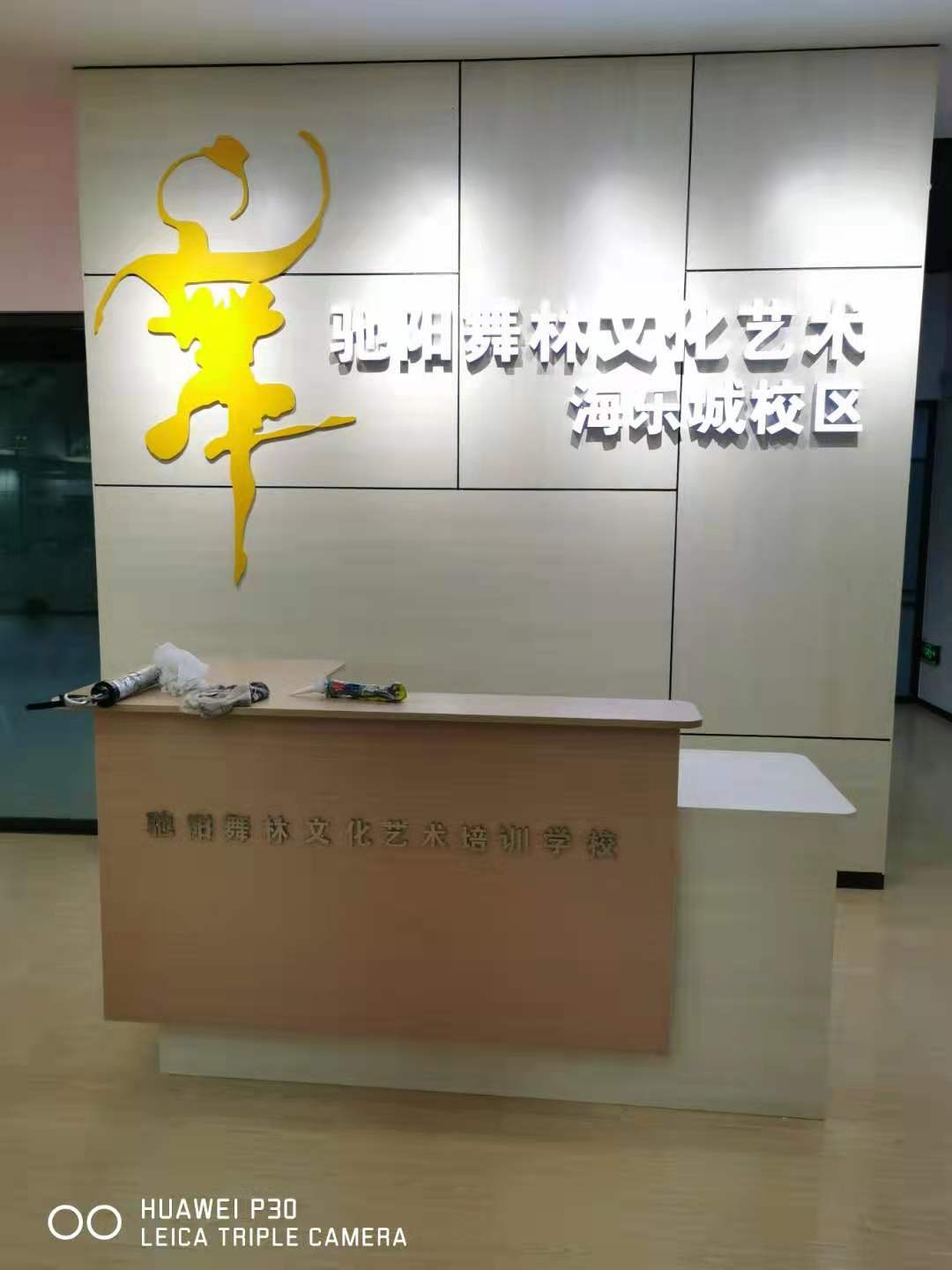 户型为L型结构,功能设置有舞蹈教室、古筝教室、书吧、冷饮区