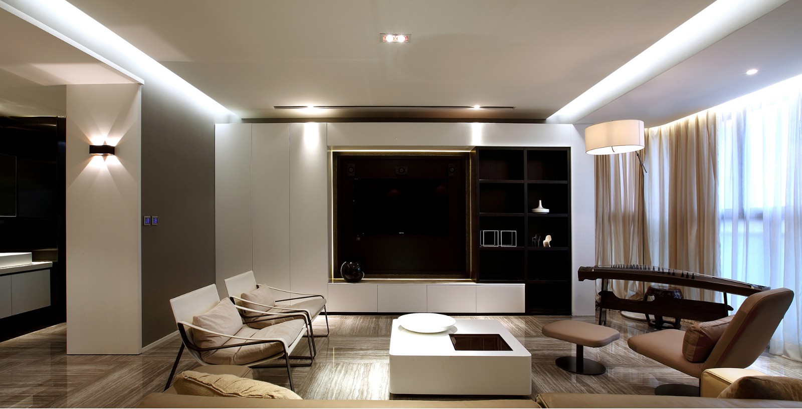 透进来的光线与室内相互辉映,整体氛围高度艺术化,没有过多的惊艳元素,冷静的空间气质带来大气的视觉享受。