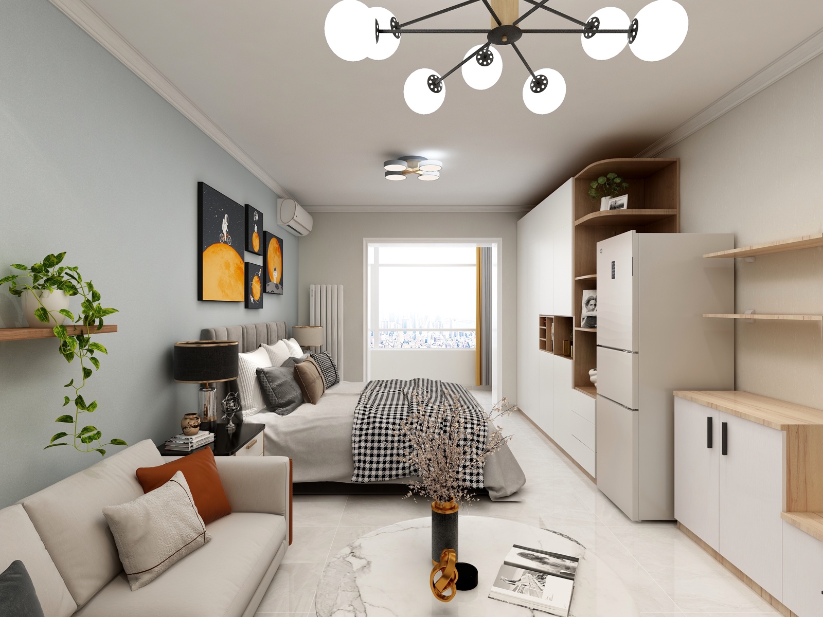 一居室户型,增加了转角沙发