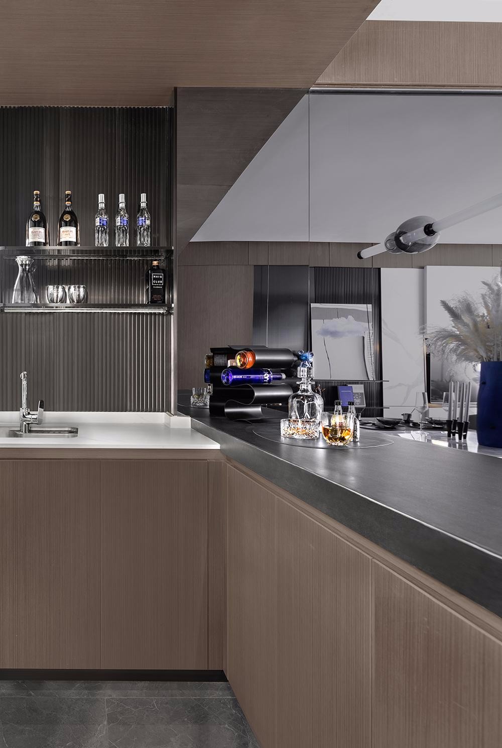 黑与白,大地色与棕咖色,以稳重之意联名,灵感却自然乍现。纹理流“韵”,线条露“骨”。 写意生活的“餐厅一角”,专属于开放格局的一隅美味时刻。
