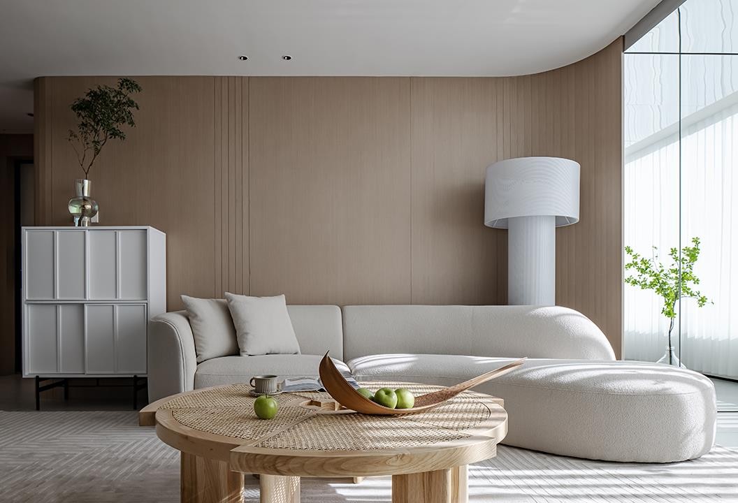 本案例整体空间以温暖、自然为侧重点,并运用金属黄铜、石材、藤编等流行元素用作氛围点缀,材质的温润和流体的造型彼此呼应,塑造了一个温文雅致的生活空间。