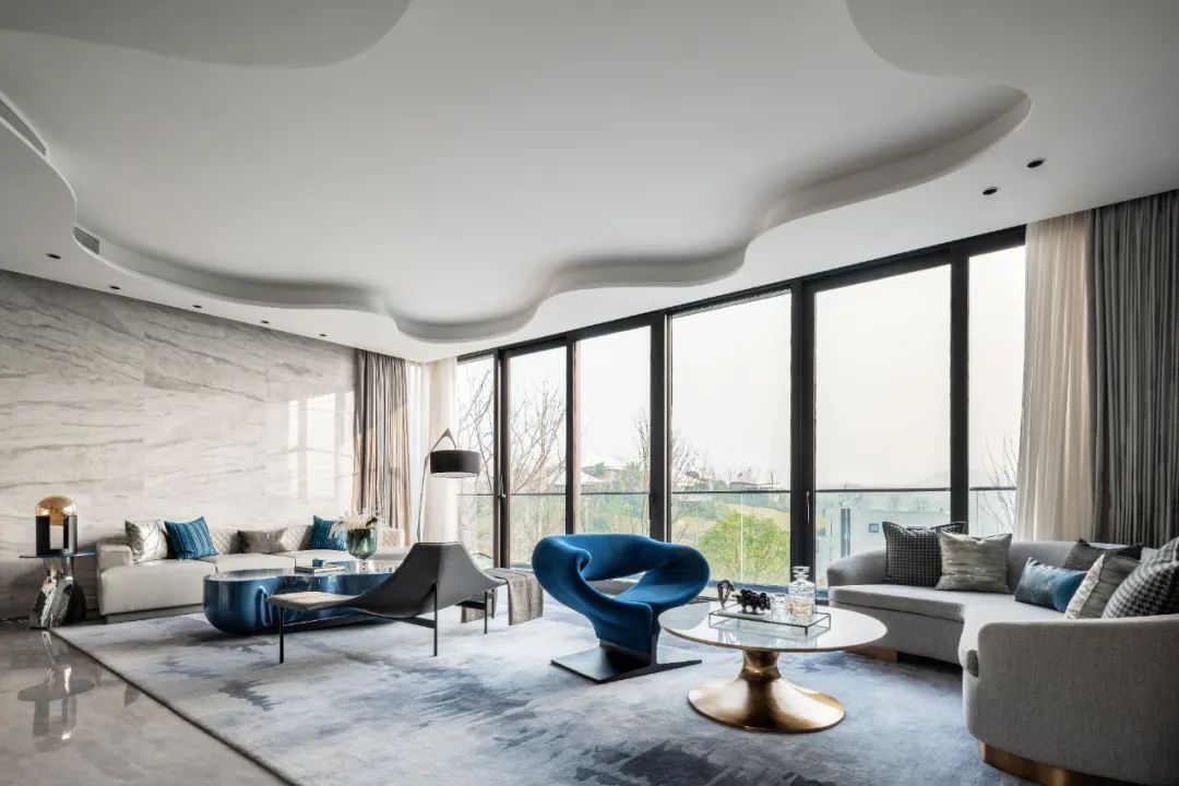 立面的装饰语言则简练到***,注重使用材质与材质之间的搭配、肌理感的变化,塑造出空间的时尚雅致与艺术气质。浪漫梦幻的曲线天花勾勒出现代都市新贵崇尚野奢浪漫的生活风尚。