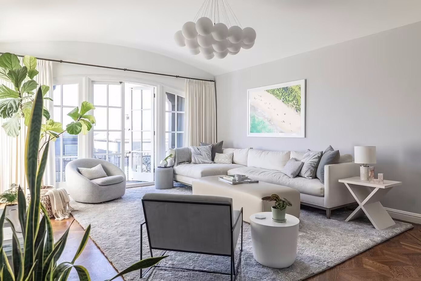 粉白为主基调,再将一抹暖白色点缀其间