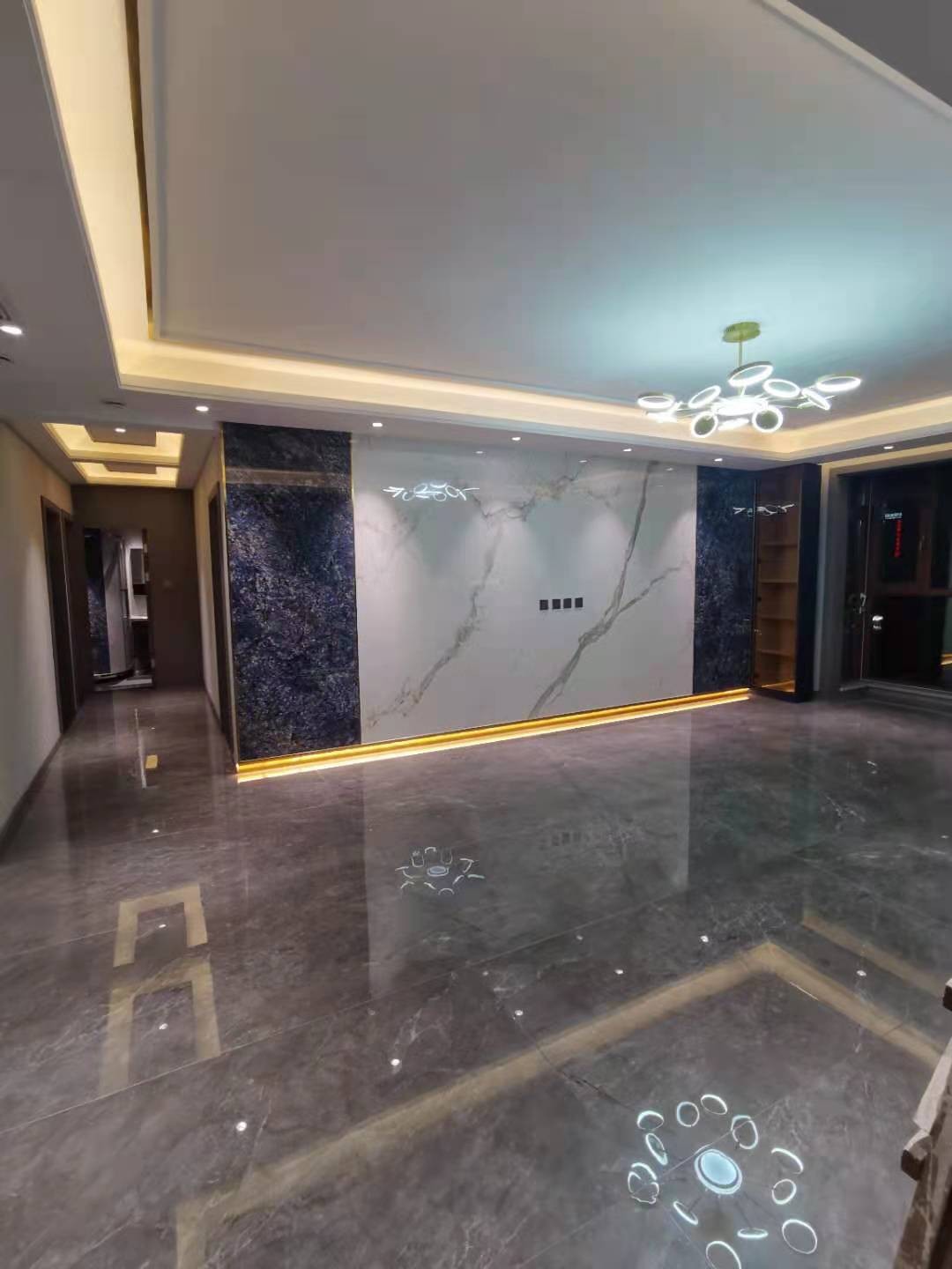 现代轻奢设计风格入户门厅,黑白灰配色及鞋柜灯带表现出空间层次管
