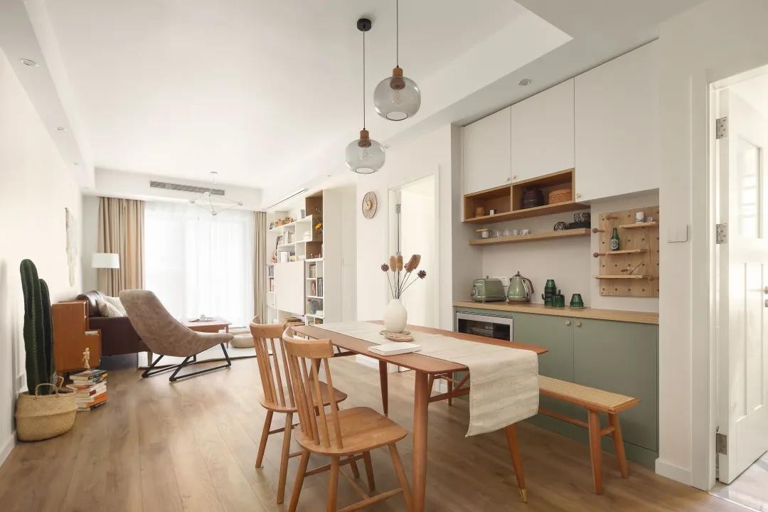 原木地板搭配同色系餐桌椅,反璞归真。