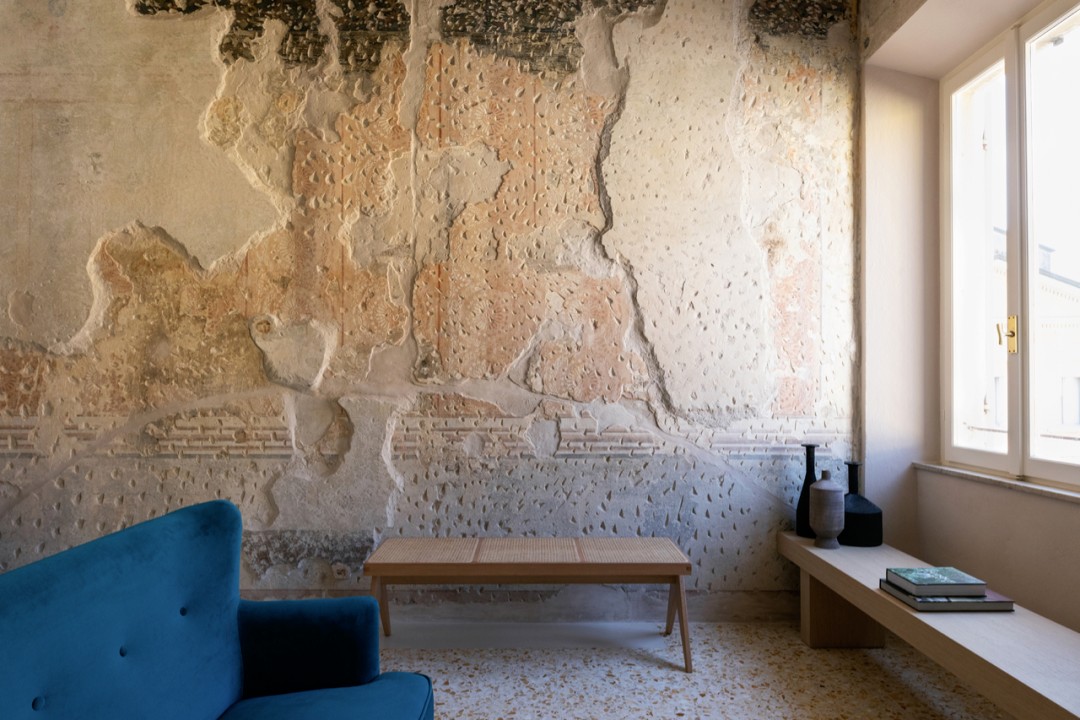 客厅设计打破常规,选择了小众风格做旧处理