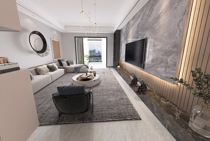 现代风格的大板加上长城板的设计搭配上暖白的灯光,让整个客厅空间显得大气却不失温馨