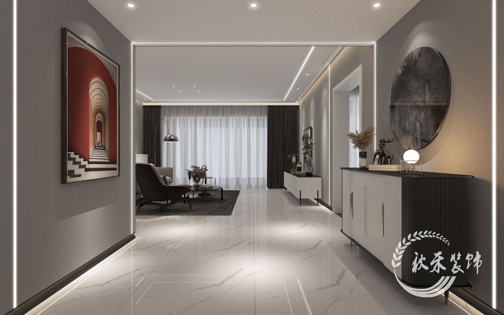 空间设计成现代简约风格,空间颜色以经典黑白灰搭配,配以现代科技感强的线条灯,总体空间营造出一种时尚、前卫大气的感觉。