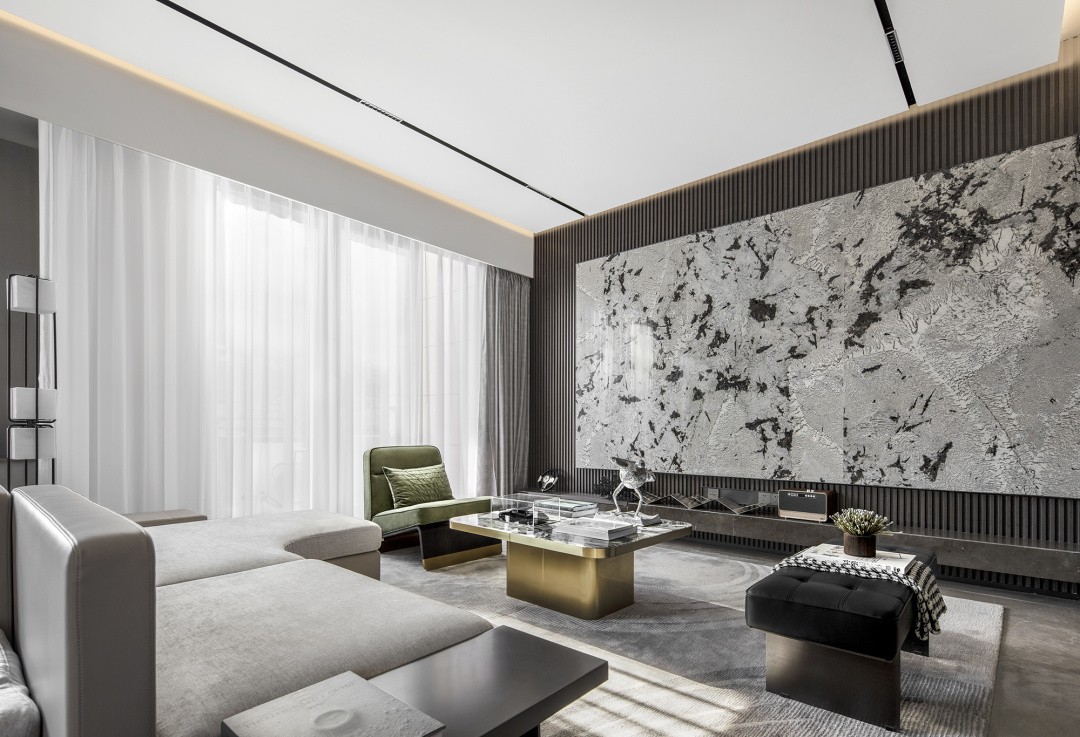 光与色的流转只在短短数秒便幻化无穷,在无常虚空中捕捉它们、记录它们,把这种美丽描绘到***,哪怕这种***透露出一丝丝的脆弱。印象派的轻盈和意识流,广泛地应用在中叠空间布置中。设计师将其置于沉稳灰调之上,为这抹轻盈和***找到落脚点,而不至于过于流荡。