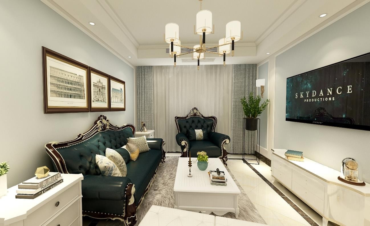 整体色调为淡绿色,整体风格为欧式田园风