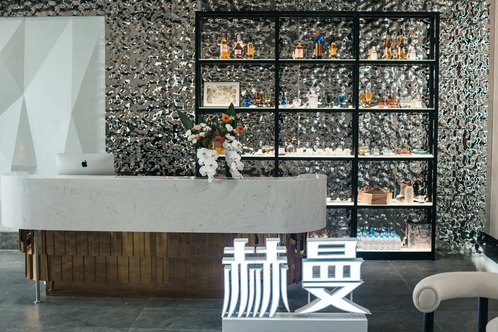 300多平SPA空间,复古摩登风,利用波纹砖、不锈钢反光天花,和拱门造型,打造摩登感