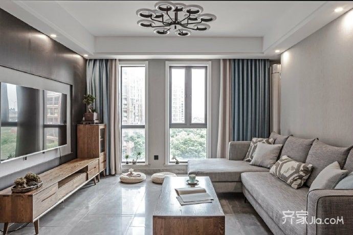 简单的电视背景墙配上原木色家具温馨就是他