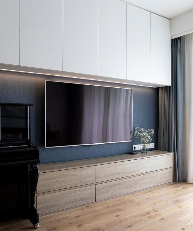 客厅将电视背景和储物柜结合, 室内空间宽敞