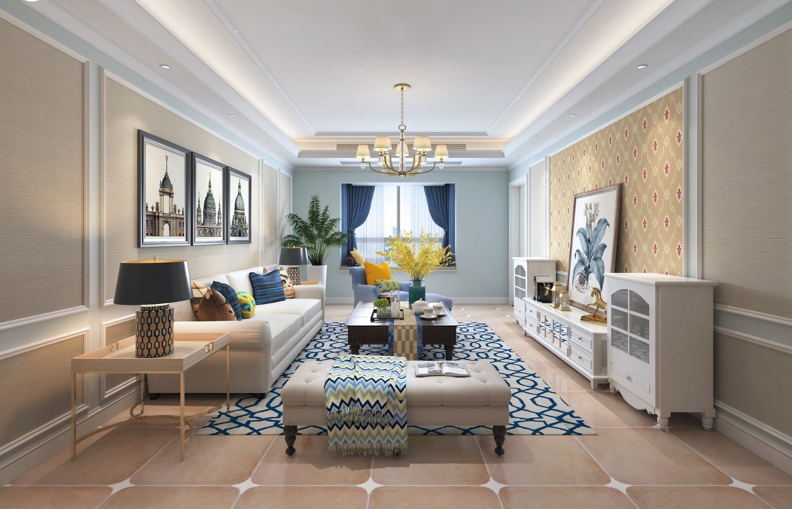 房型为两室两厅一厨一卫,业主喜欢美式风格,色彩要求明亮欢快,所以设计师推荐了美式清新风格,色彩浓厚,温馨感十足。