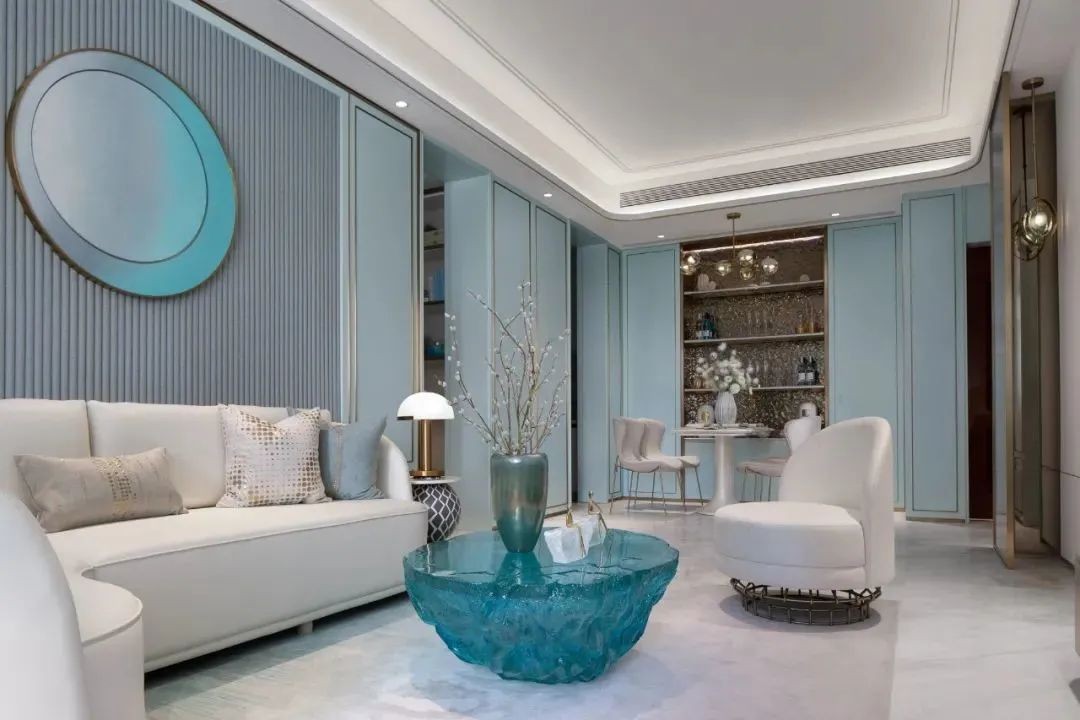 在这套96平米的房子中,整体装修以现代轻奢的***空间感为主,通过在空间内加入大量淡蓝色的设计元素,结合艺术感满满的摆饰品,也让空间显得更加优雅文艺而精致。