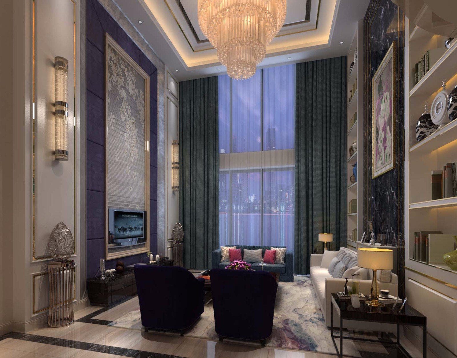 不同元素碰撞出体面与光鲜的空间氛围,西厨增强空间使用性,开放发光玻璃柜与隐藏推拉门,汇聚新的设计手法与表现形式,在细节中提升品质。软装以几何的简洁性,与高品质材料、工艺搭配,变幻出空间丰富的表面肌理,通过金属、皮革等经典奢品,演绎空间格调。