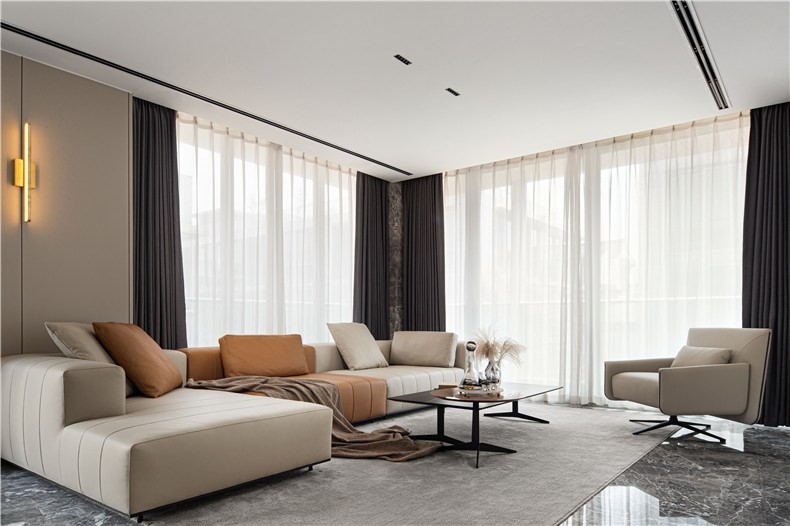 设计师用木质和大理石的天然肌理及触感,国之五色元素,将空间与传统文化贯通合一,为屋主打造出一个繁华喧闹中的轻奢之家,在细节中让人感受内心的安宁与舒畅。