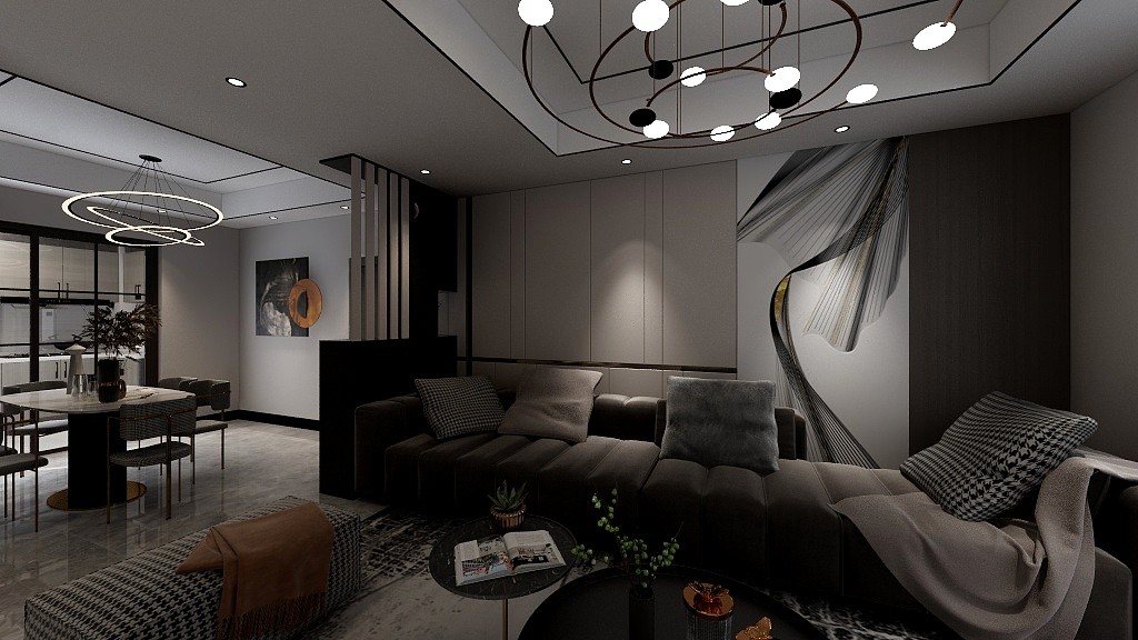 轻奢风,采用金属线条,黑白灰主色调