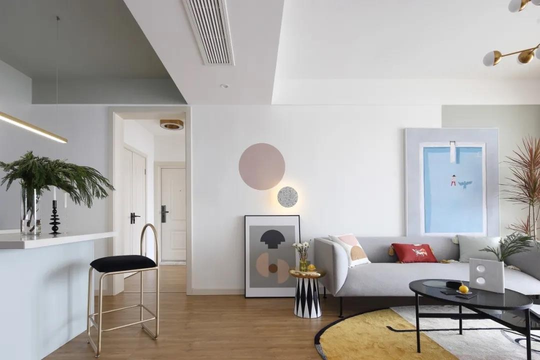 在这套107平米的房子装修中,整体空间以极简洁净的简约风格为空间基调,布置上简约舒适的家具,还有细节处以浪漫精致的质感与色彩布置,营造出一种浪漫优雅的高冷气质范。