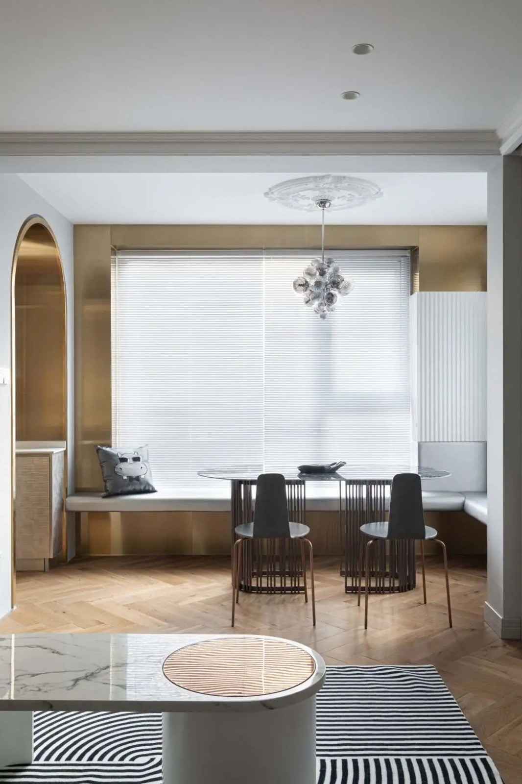 以轻法式为基调,采用经典的拱门元素串联餐厨空间,展现轻奢大气范