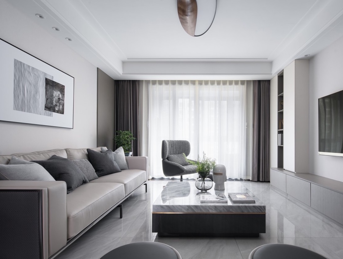 现代的简约干练,中式的典雅,融合在空间的形态、细节里,优游自如。