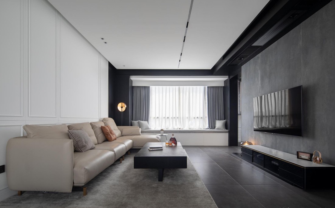 天花四周的黑色造型与客厅保持一致,使整个家每个空间硬装达到整体统一