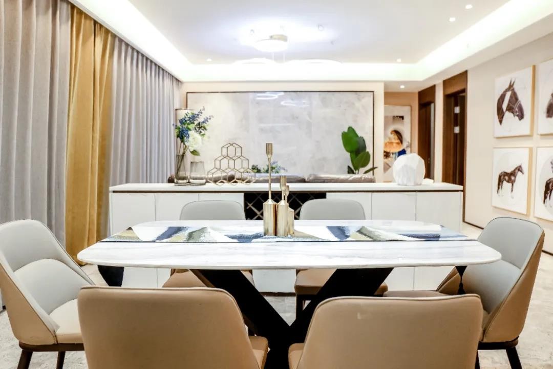 这套精装房客厅整体空间基础相对都比较好,客厅和餐厅在同一空间,非常开阔。