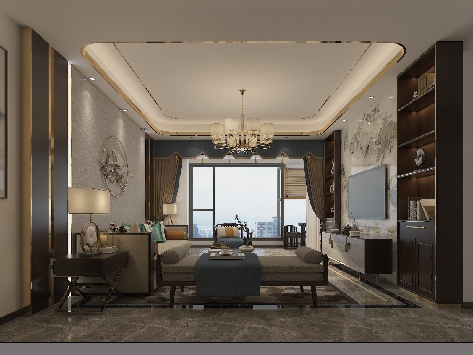 府邸纵深,气度雍容。古风中国与现代美学相遇,融合于飘逸磅礴的背景。洒脱利落,完美的归家礼遇深度贴合居者身份。