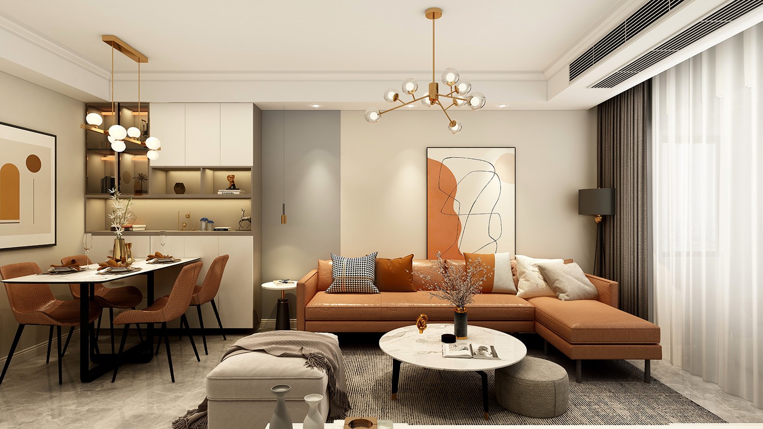 客厅空间摈弃了繁复的装饰,以细节放大我们的感受与空间想象。整体以灰调为主,大部件的沙发质感***,浅绒地毯跟沙发风格统一和谐,打造干净清闲的居家环境。