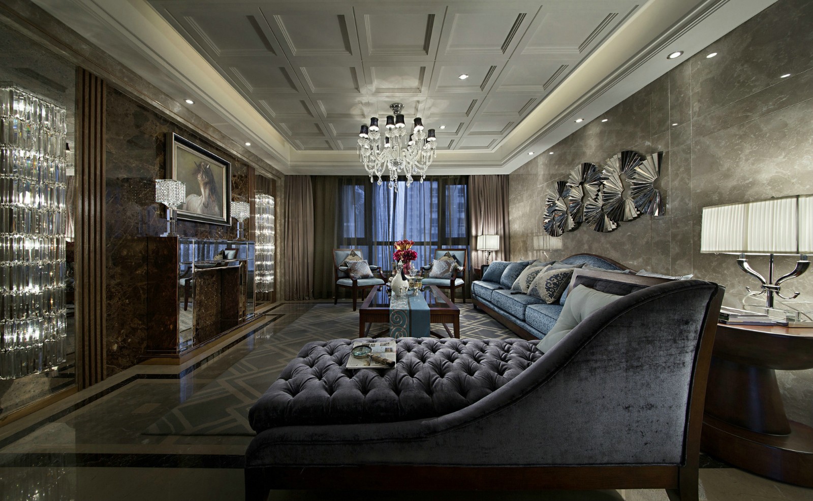 常用大理石、华丽多彩的织物、精美的地毯、多姿曲线的家具,让室内显示出豪华、富丽的特点,充满强烈的动感效果。